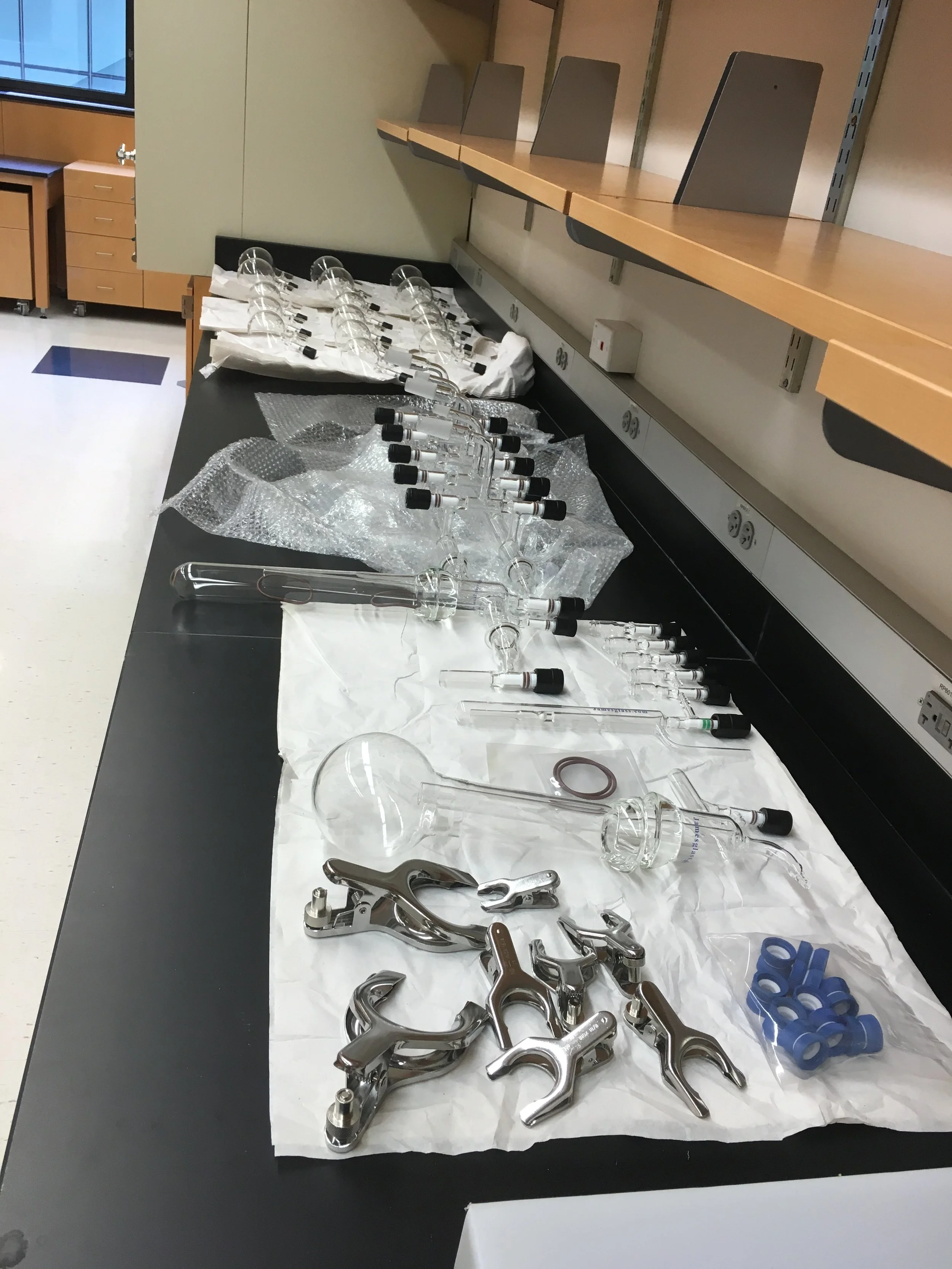 Sept 2016 September 29, 2016 Lab setup just took a leap forward, thanks to a big delivery of custom glassware from our good friend Ed at James Glass